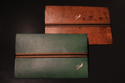 写真は黒と赤です。 お店のロゴなどを入れて・・・また 折り目を付けてら加工しましたので、開け閉めしても紙が折れません。 ●(A3判)ヨコ開き・・・写真通り 作成に2ヶ月程度の余裕をみてください。(天候や作成のタイミングで、予想外の日数が掛かる場合が有りますので・・・念のため) |