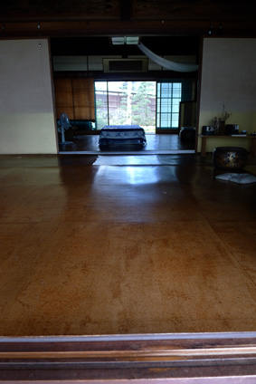 裏面には柿渋を霧吹きで吹く。(強度、防虫効果)塗ってしまうと割れやすくなるため。